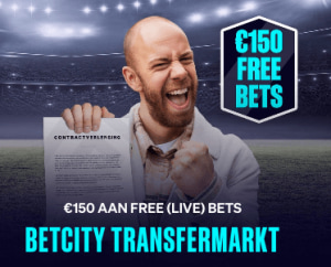 De transfermarkt is een promotie van BetCity waarbij je als je een transfer maakt naar BetCity, met andere woorden jezelf bij de bookmaker aanmeldt, tot maximaal 150 euro aan free bets kunt pakken. Met die BetCity bonus kun je inzetten op de Eredivisie, de Premier League, Serie A, La Liga, Champions League, Europa League en de Conference League.